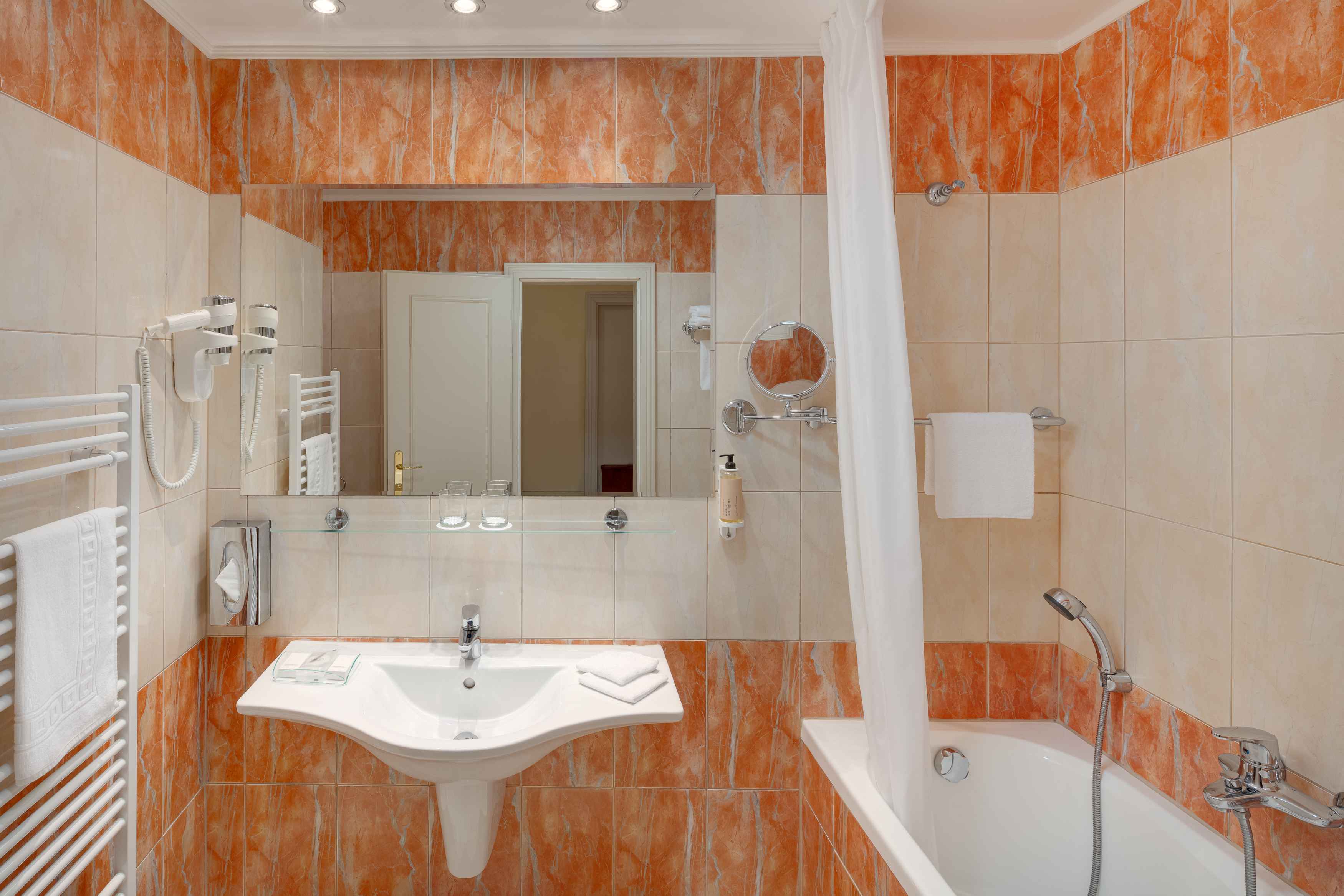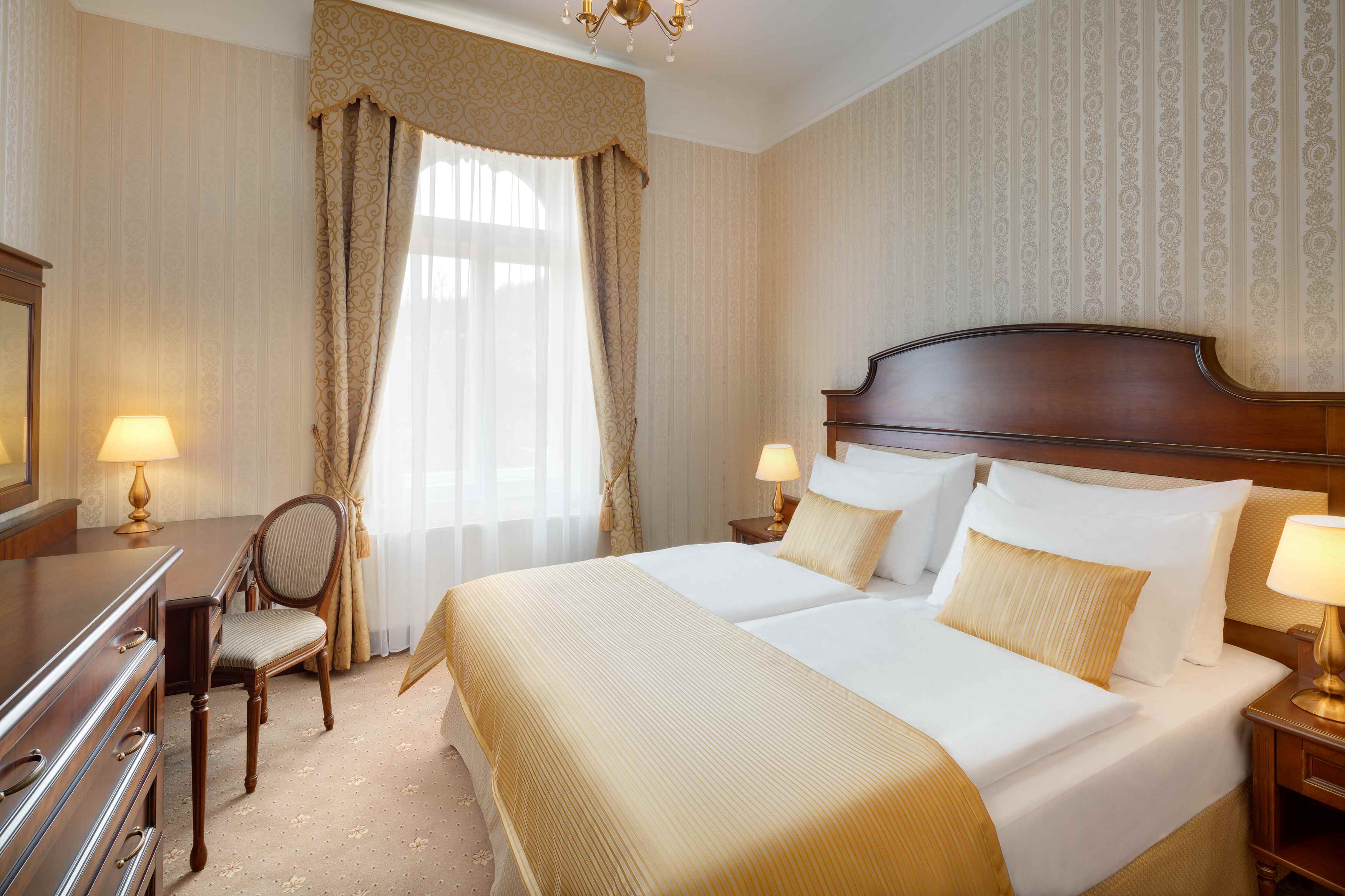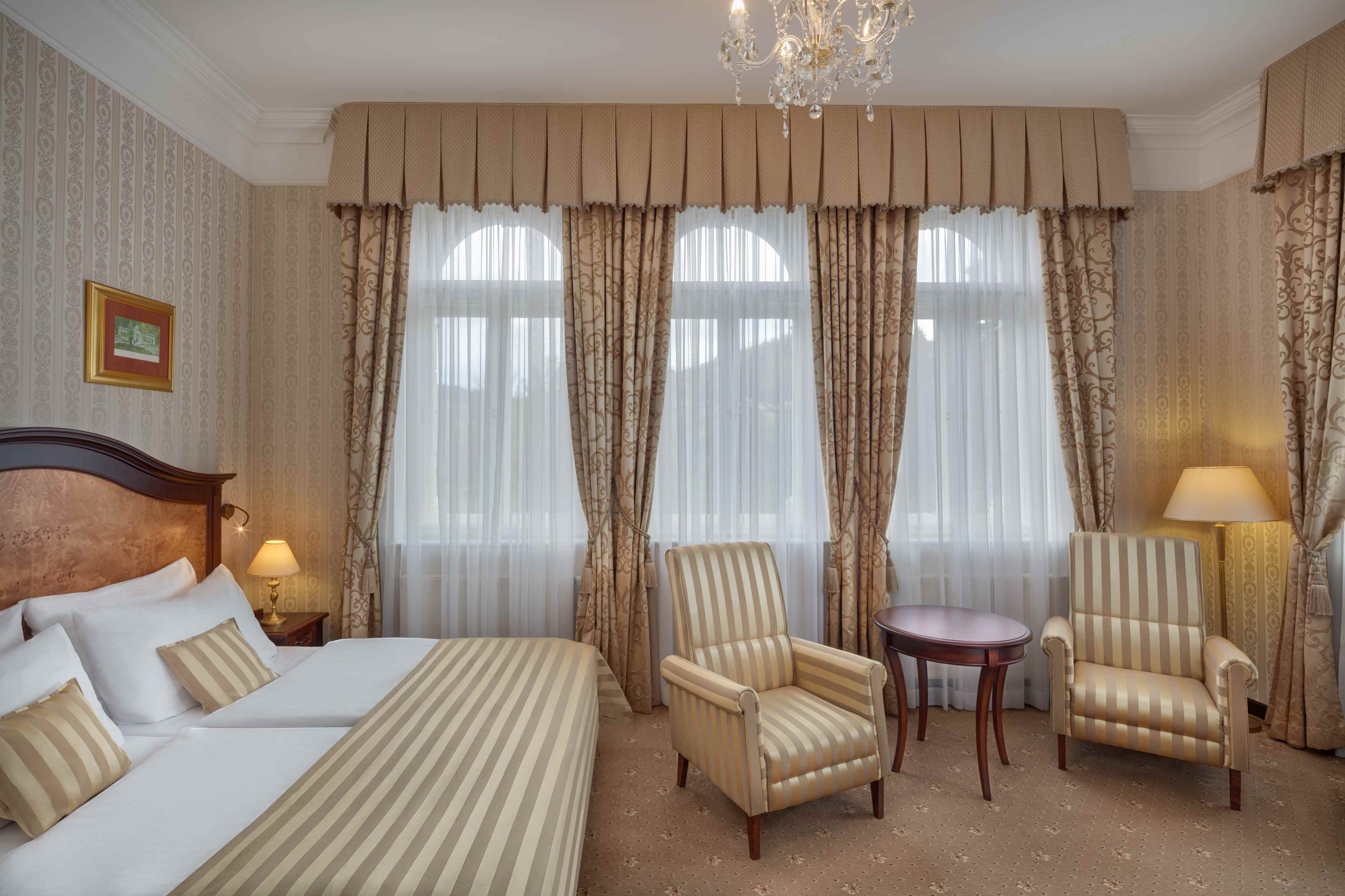 Doppelzimmer Superior Plus: ca. 17 m², für 2 Erwachsene + 1 Kind, mit Blick auf den Spa-Park und die Kolonnade; teils mit Balkon/Verbindungstür, Zustellbett auf Anfrage.